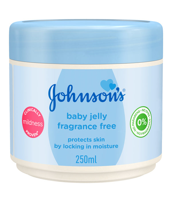 JOHNSON’S Baby Jelly Fragrance Free is specially formulated to protect newborn baby skin by creating a light protective barrier against wetness and preventing nappy rash.